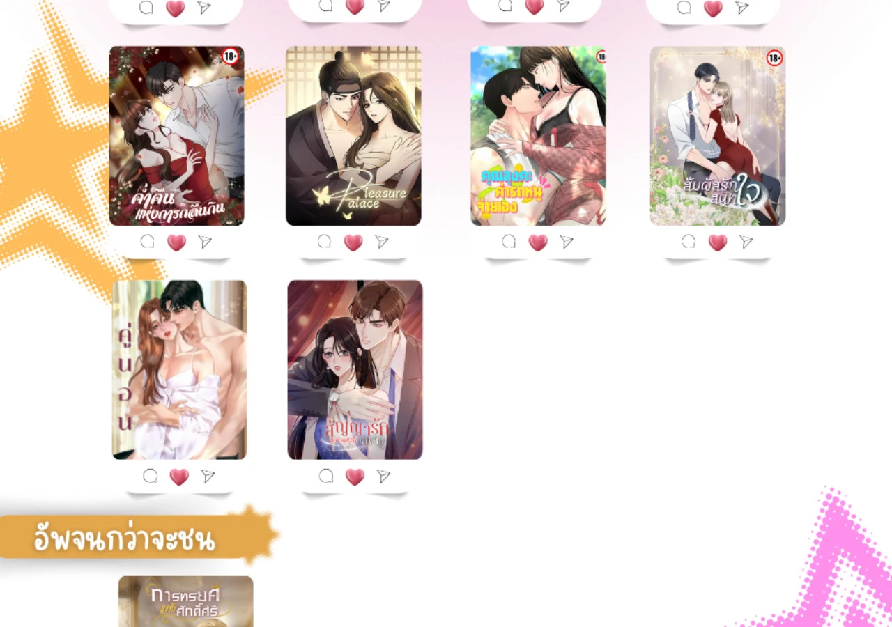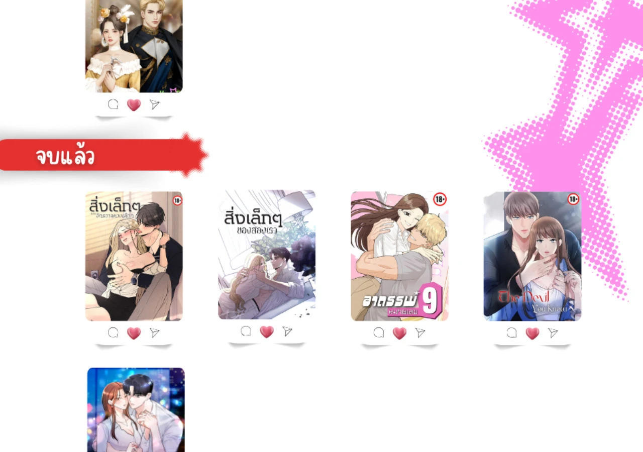 ค้นพบเรื่องราวที่หลากหลายตั้งแต่แอคชั่น แฟนตาซี โรแมนติก ไปจนถึงการ์ตูนวาย และมังงะสุดฮิตจากแพลตฟอร์มยอดนิยมอย่าง Webtoon, Kakao และ Comico